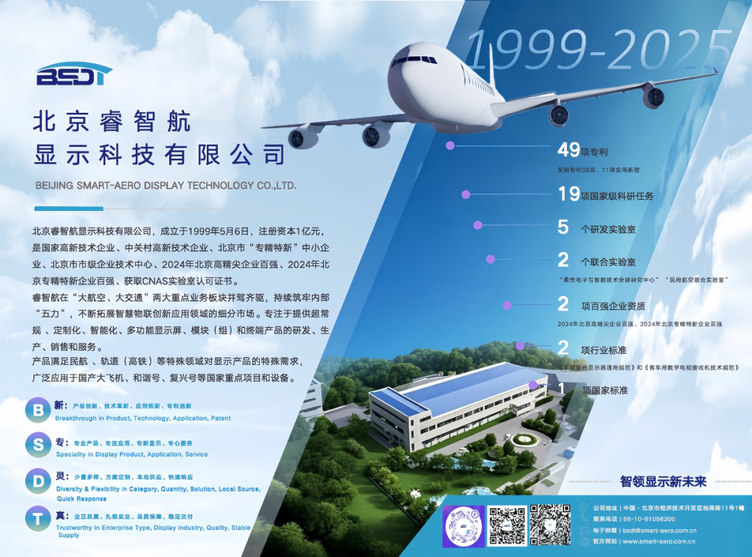 睿智航成立于1999年5月6日,主要从事显示屏、显示模块(组)以及显示终端的研发、生产、销售和服务,产品广泛应用于民用航空领域,是国产大飞机C919供应商之一。睿显航拥有独立的研发团队,不断进行科研创新工作,目前拥有已授权专利49项,其中发明专利38项。