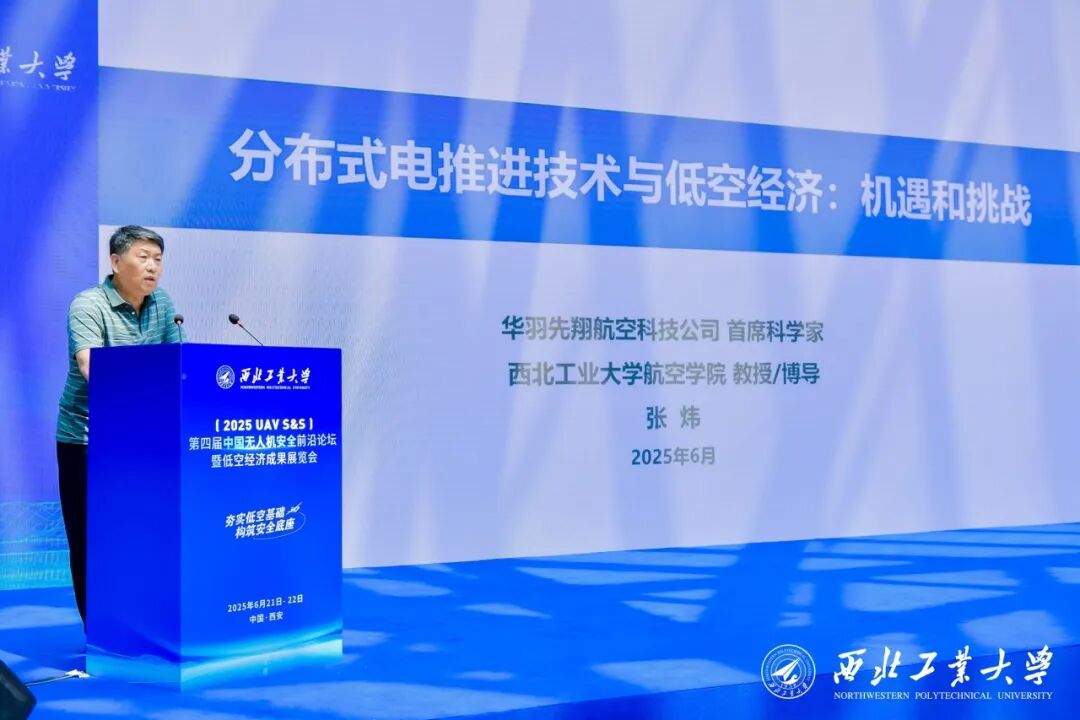 2025年6月21日至22日,第四届中国无人机安全前沿论坛暨低空经济成果展览会在西安盛大举行。华羽先翔联合创始人、首席科学家、西北工业大学航空学院教授/博导张炜教授受邀出席此次盛会,并发表了题为《分布式电推进技术与低空经济:机遇与挑战》的主题演讲,深入剖析了低空经济领域的发展趋势,以及华羽先翔在技术创新方面的卓越成果。